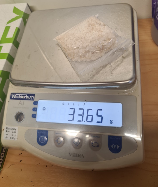 Upon further inspection 33.65 grams of a crystal substance, similar to MDMA or methamphetamine, and 8.77 grams of a brown paste smelling of cannabis were located.