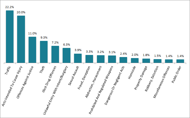 * Community-based offenders may be convicted of offences across multiple categories. This information is based on the most serious offence an offender is convicted of.
