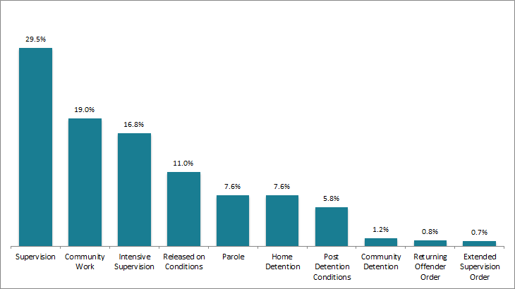 The community-based sentences and orders data refers to the total number of sentences and orders being served. An individual offender can be serving more than one sentence and/or order at any time.