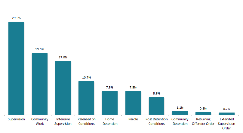 The community-based sentences and orders data refers to the total number of sentences and orders being served. An individual offender can be serving more than one sentence and/or order at any time.