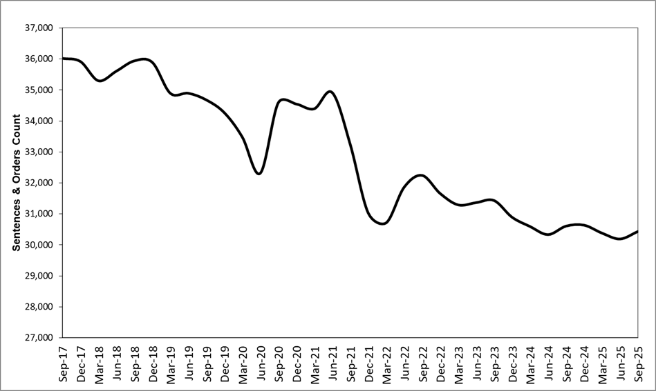 The community-based sentences and orders data refers to the total number of sentences and orders being served. An individual offender can be serving more than one sentence and/or order at any time.