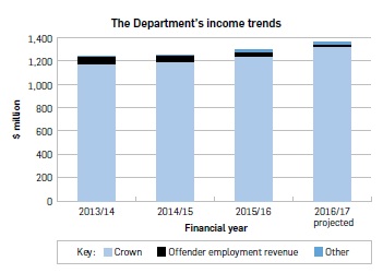 While our income is predominantly provided by the Crown we also generate a small revenue stream from our offender employment activities such as farming, distribution and other industries. The timing of livestock sales has attributed to offender employment revenue being slightly below the supplementary estimates.